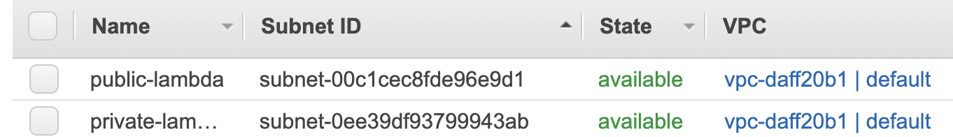 기존에 설정했던 Subnet들을 없애고, 새롭게 만든 private Subnet을 lambda에 부여합니다.