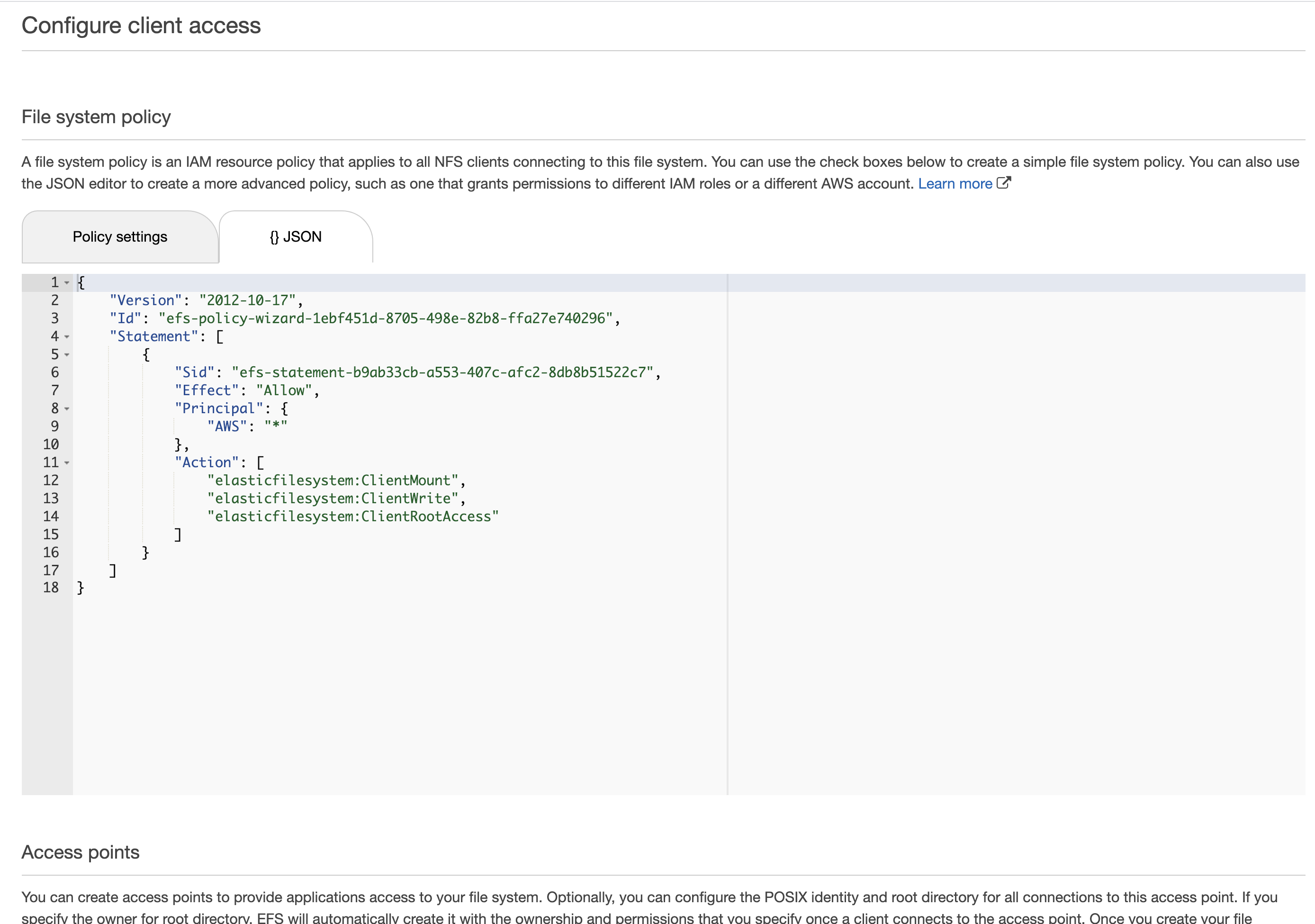 access point는 로컬 디렉토리가 efs 디렉토리와 연결될 수 있도록 access end point를 제공합니다.
