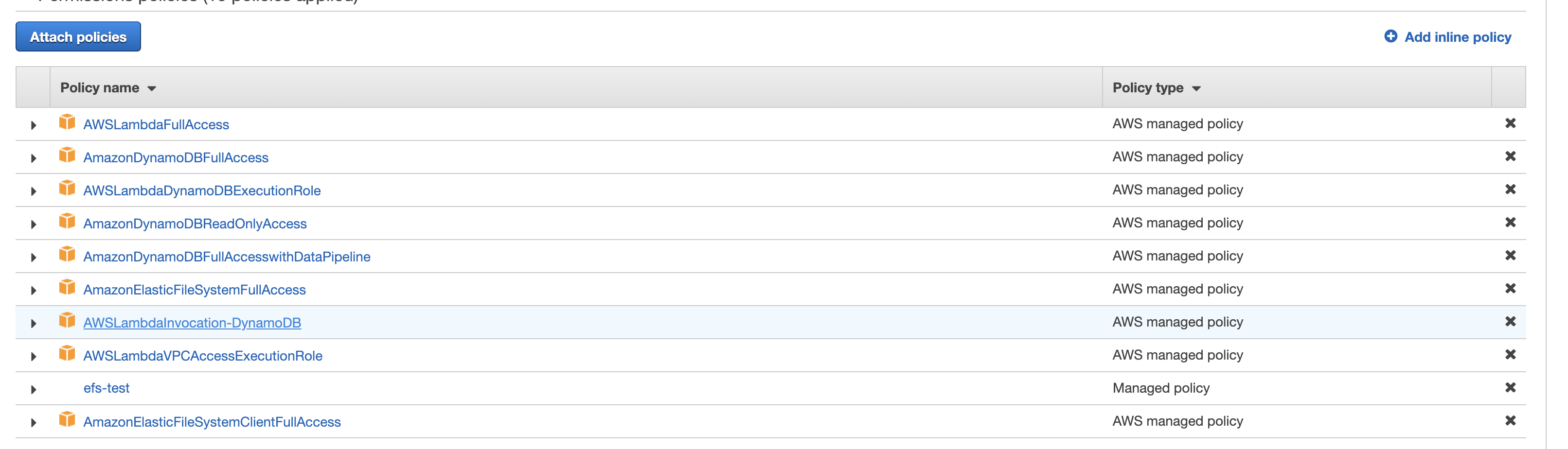 AWSLambdaVPCAccessExecutionRole 정책과 AmazonElasticFileSystemFullAccess 정책을 꼭 부여해야 합니다.