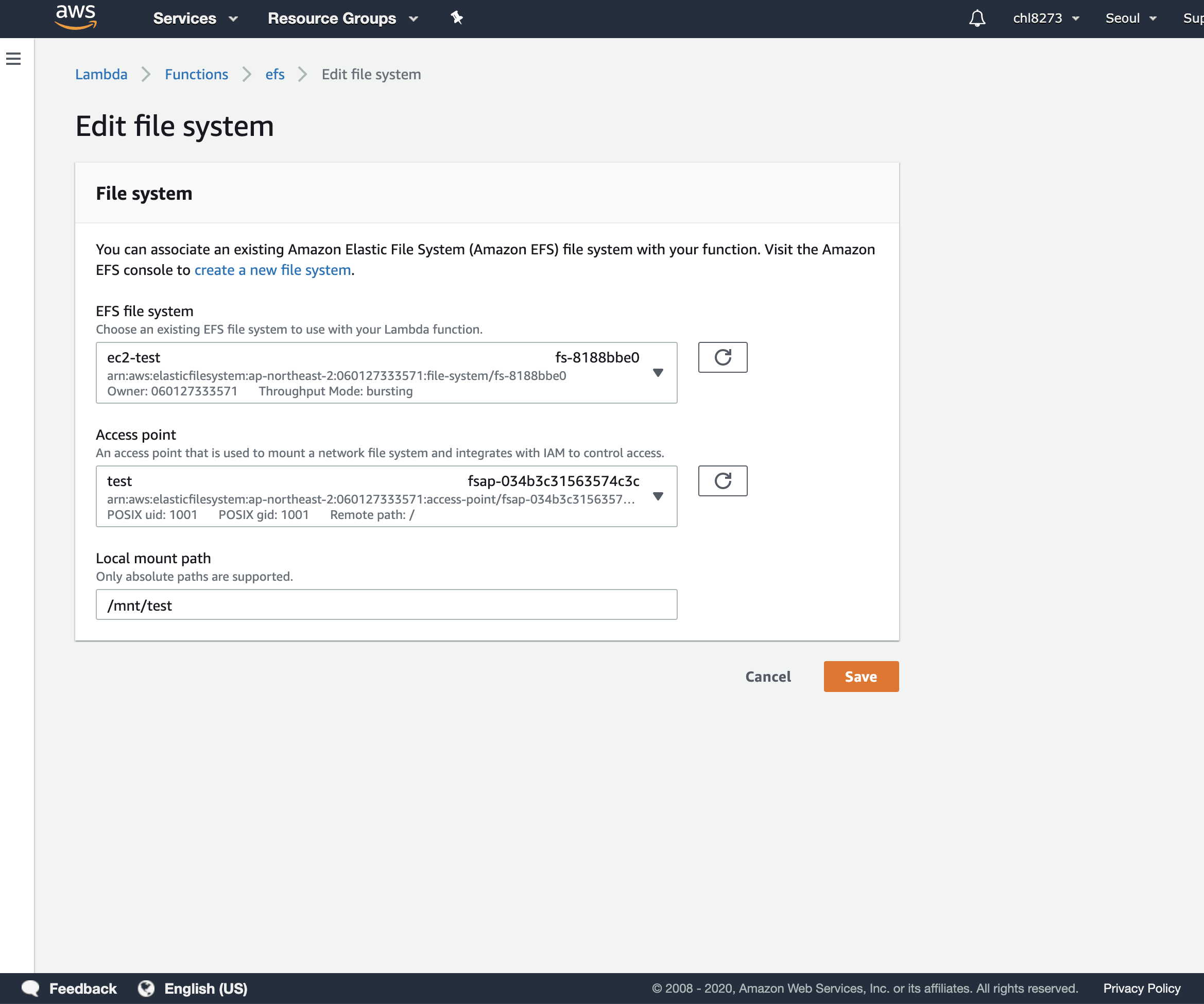 [AWS Lambda] AWS EFS를 Lambda 저장소로 사용하기 본문
